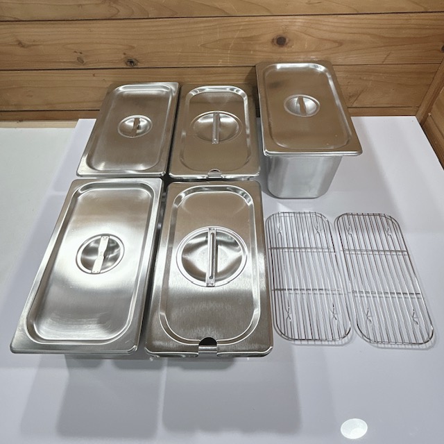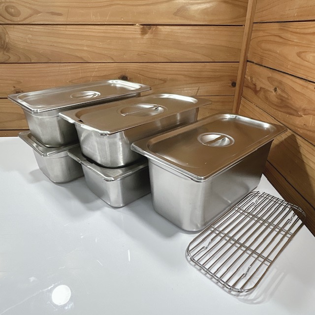 【中古】調理器具 ステンレス ホテルパン 1/3サイズ 95・100・150mm W325×D175mm 蓋付 5点セット (敷網2点付)