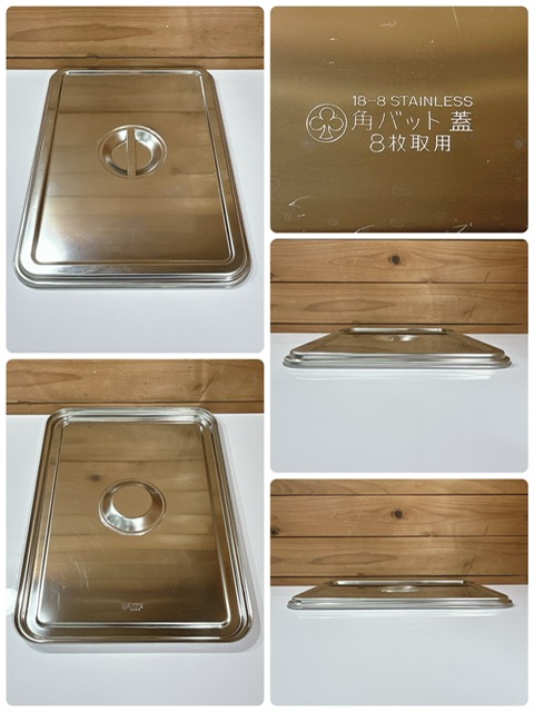 【保管品】clover/クローバー 業務用 18-8 ステンレスバット 角バット 8枚取 調理バット W405×D290×H60(mm) 蓋付 2点セット
