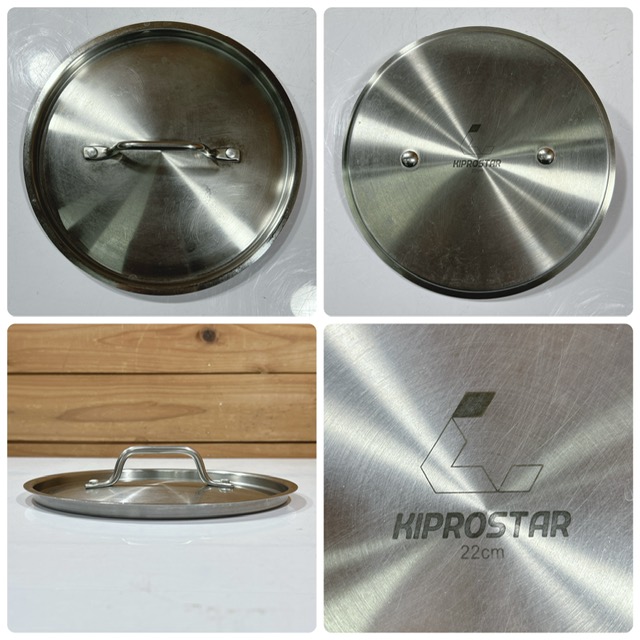 【中古】業務用 KIPROSTAR/キプロスター 業務用 ステンレス 半寸胴鍋 IH対応 電磁調理器鍋 22cm 蓋付 φ220×H160(mm)