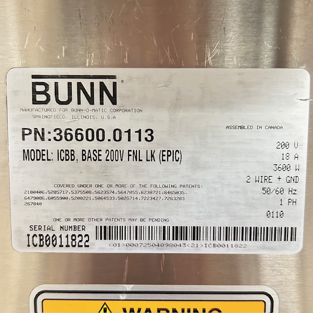 【中古】ラッキーコーヒーマシーン BUNN 業務用コーヒー抽出機 コーヒーブリュワー ポットブルーワー ICBB 水道直結式 2010年製 ※足未設置