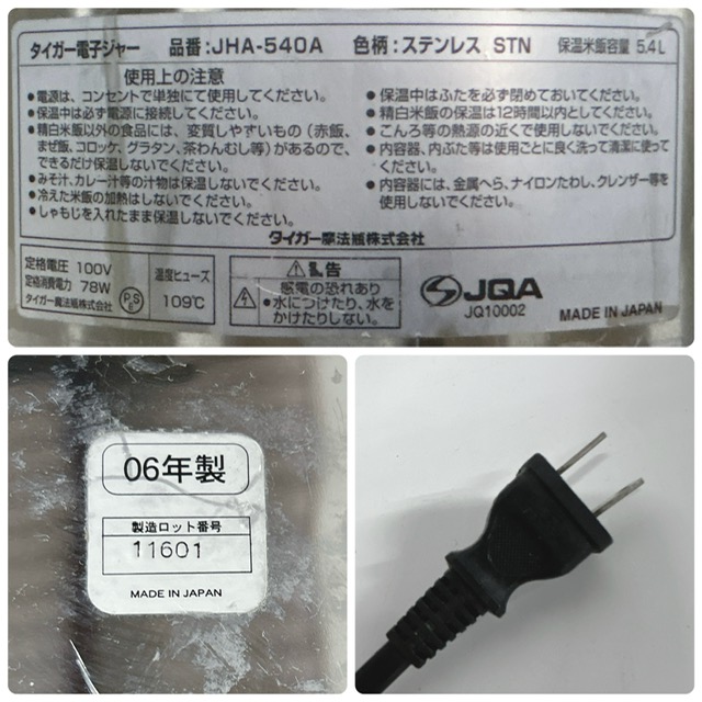 【中古】業務用 TIGER/タイガー 電子ジャー 保温ジャー JHA-540S ステンレス STN 容量5.4L 単相100V 2006年製 ※匂い残りあり