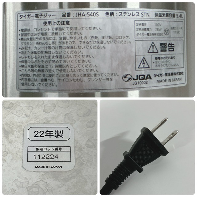 【中古】TIGER/タイガー 業務用 電子ジャー 保温ジャー JHA-540S ステンレス STN 容量5.4L 単相100V 2022年製