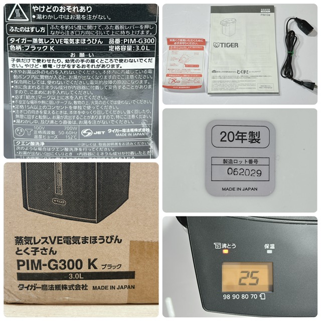 【中古】TIGER/タイガー 蒸気レスVE電気まほうびん とく子さん PIM-G300 BLK 電動ポット 沸騰ポット3.0L 2020年製《在庫数 2》