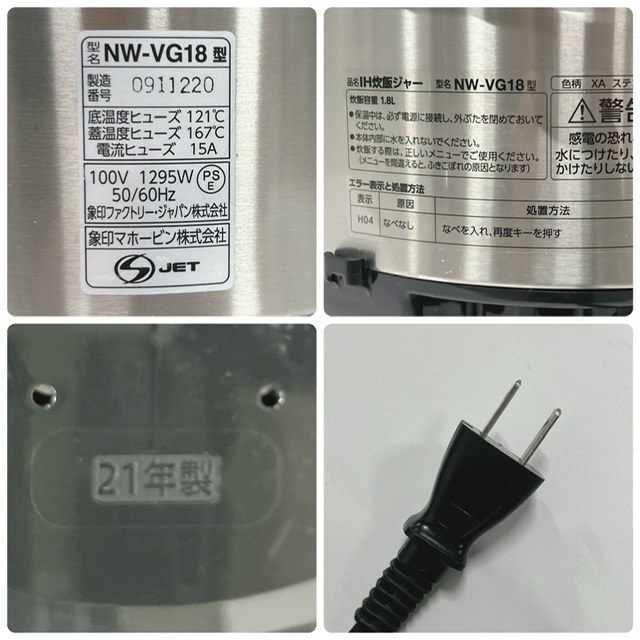 【中古】ZOJIRUSHI/象印 マホービン 業務用 IH炊飯ジャー 業務用炊飯器 極め炊き 1.8L NW-VG 18型 XA ステンレス 2021年製 ※内窯無し