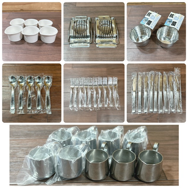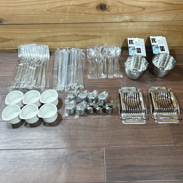 【未使用・保管品】調理器具 調理用品 まとめ売り 卵切器 ミルクピッチャー 計量カップ フォーク ナイフ 他 計43点セット
