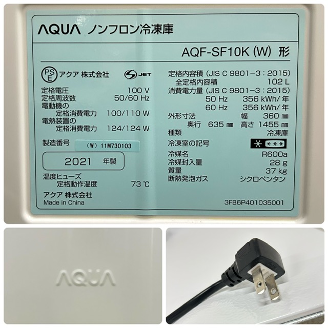 【中古】AQUA/アクア 家庭用冷凍庫 縦型冷凍庫 5段式 バスケット4個 AQF-SF10K 102L W360×D635×H1,455(mm) 2021年製 | 集まる!厨房の森