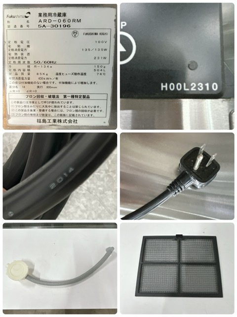 【中古】GALILEI/フクシマガリレイ 業務用 タテ型冷蔵庫 インバーター制御 縦型 2ドア冷蔵庫 ARD-060RM 2015年製