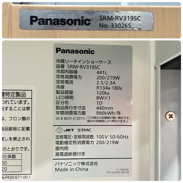 【中古】Panasonic/パナソニック 業務用 リーチイン冷蔵ショーケース 冷蔵ショーケース 木目調 SRM-RV-319SC 2023年製