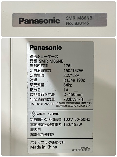 【中古】Panasonic/パナソニック 業務用 箱形 冷蔵ショーケース 箱形ショーケース スライド扉 SMR-M86NB 144L 2018年製