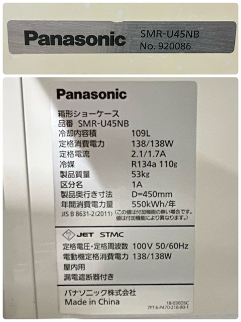 【中古】Panasonic/パナソニック 業務用 箱形 冷蔵ショーケース 箱形ショーケース スライド扉 SMR-U45NB 2019年製 ※特注天板 | 集まる!厨房の森