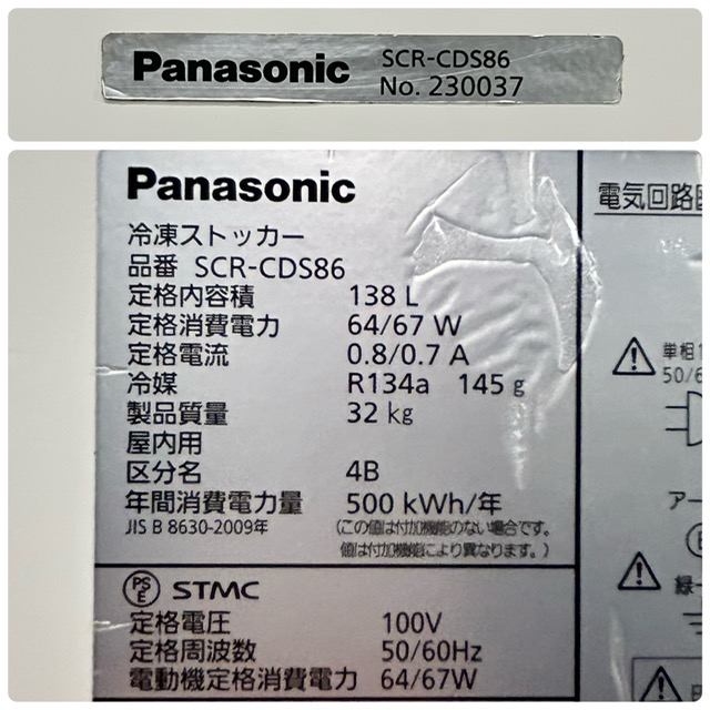【中古】Panasonic/パナソニック 業務用 冷凍ストッカー 業務用冷凍庫 スライド扉タイプ SCR-CDS86 138L 2022年製