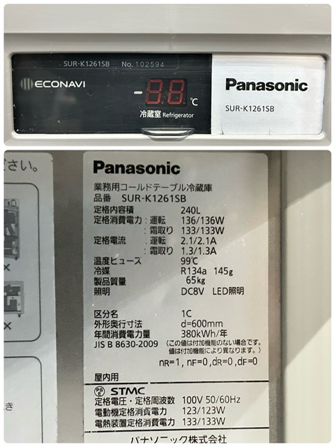 【中古】Panasonic/パナソニック 業務用 コールドテーブル 業務用冷蔵庫 台下冷蔵庫 コールドテーブル冷蔵庫 SUR-K1261SB 240L 2021年製
