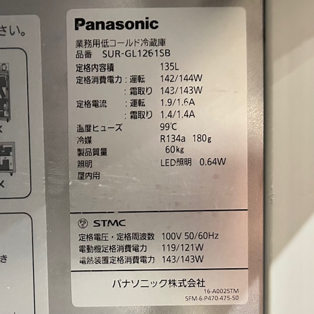 【中古】Panasonic/パナソニック 業務用 コールドテーブル 低コールド冷蔵庫 業務用冷蔵庫 H600mm SUR-GL1261SB 135L 2021年製